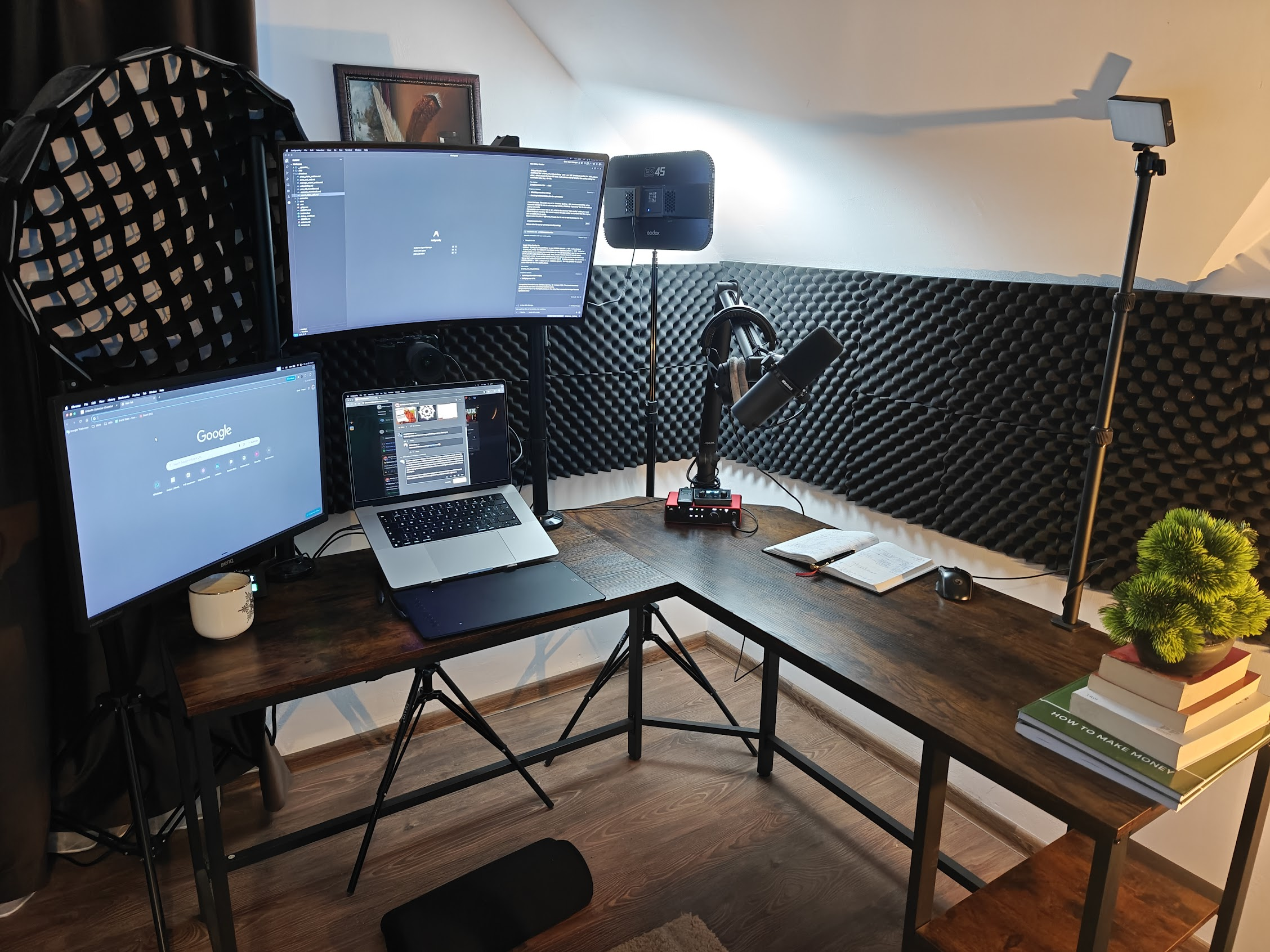 Îmi place să fac analogia cu biroul meu de acasă. Am un birou destul de hardcore: 3 monitoare, diferite gadget-uri, un microfon profesionist, interfață audio, lumini, lumini ambientale, RGB, bineînțeles. Tot ce vrei. Ar putea părea un mediu perfect de lucru. Visul umed al oricărui tech geek.